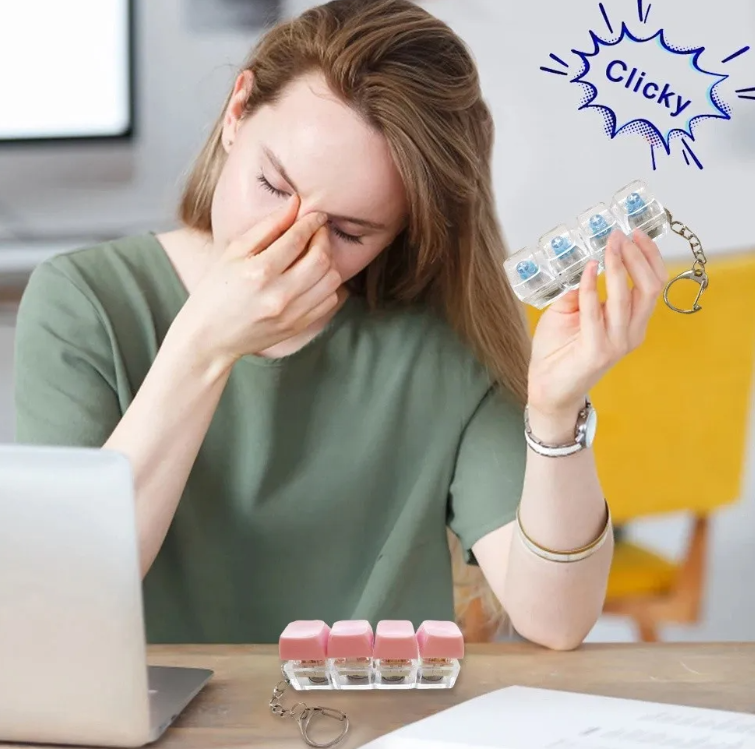 Juguete antiestrés de teclado: El pequeño llavero antiestrés consta de una fila de cuatro botones que permiten que cuatro dedos se relajen al mismo tiempo. Obtén un masaje cómodo con una simple presión. Puede ser un aliviador de estrés adecuado para jugar en medio de un día de trabajo ocupado
