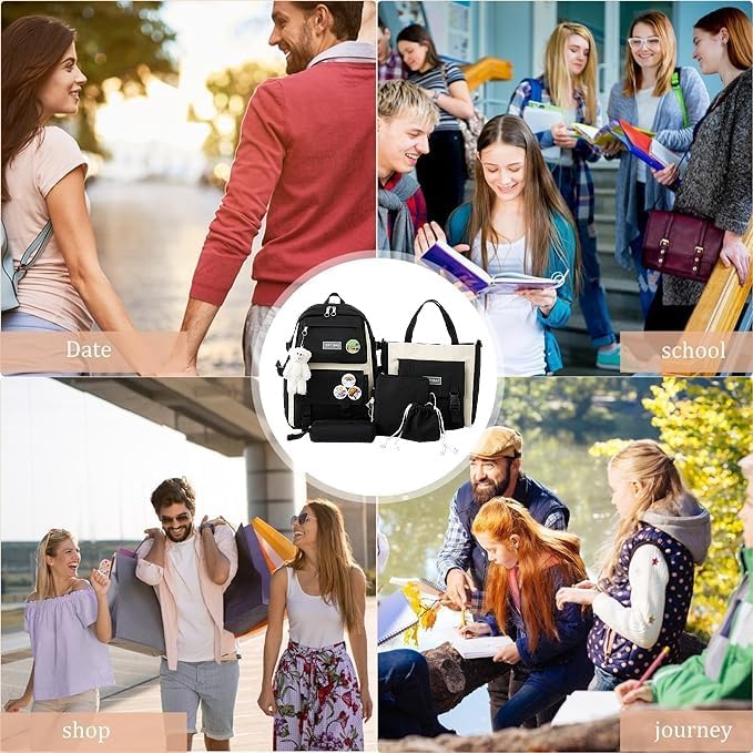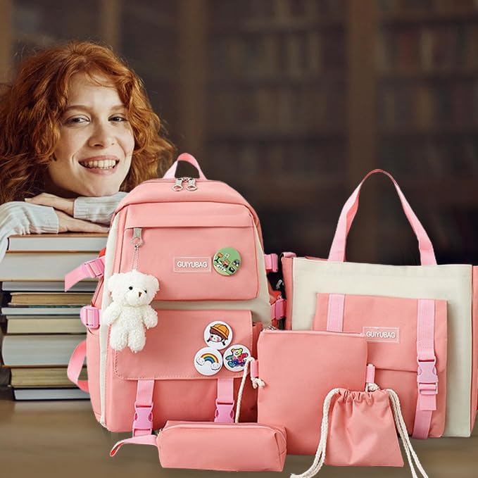 Set escolar de 5 piezas diseñado para ofrecer organización y practicidad en el día a día. Incluye mochila principal y accesorios complementarios que permiten transportar libros, laptop y útiles cómodamente. Su diseño juvenil y gran capacidad lo convierten en una opción funcional y resistente para estudiantes.