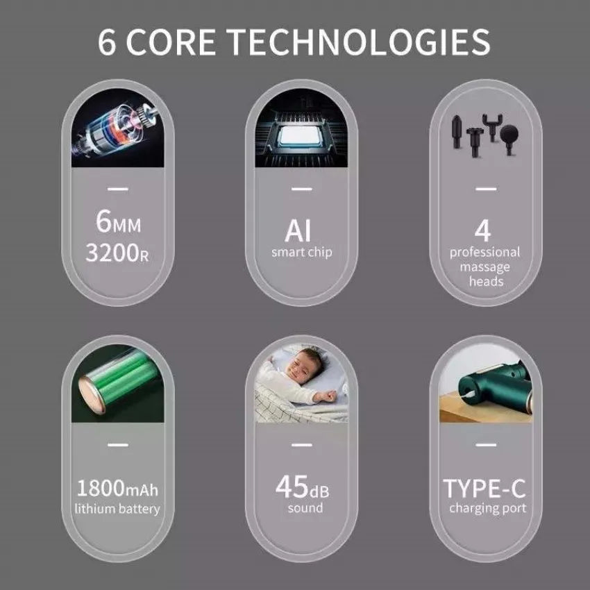 【TECNOLOGÍA DE MOTOR SIN ESCOBILLAS 】-La tecnología de inversor de reducción de ruido y un motor de alto torque controlan el volumen por debajo de 45 dB y 40% más silencioso que los masajeadores promedio. Puede usarlo en casa, gimnasio, oficina sin molestar a los demás.